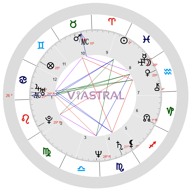Seja em que casa for, ele tem Marte, regente de seu signo e planeta da ação, da violência e do princípio masculino, em Touro, onde está mal posicionado, em oposição a Saturno, planeta da disciplina e das restrições, o que indica uma postura desafiadora, para o bem ou para o mal.